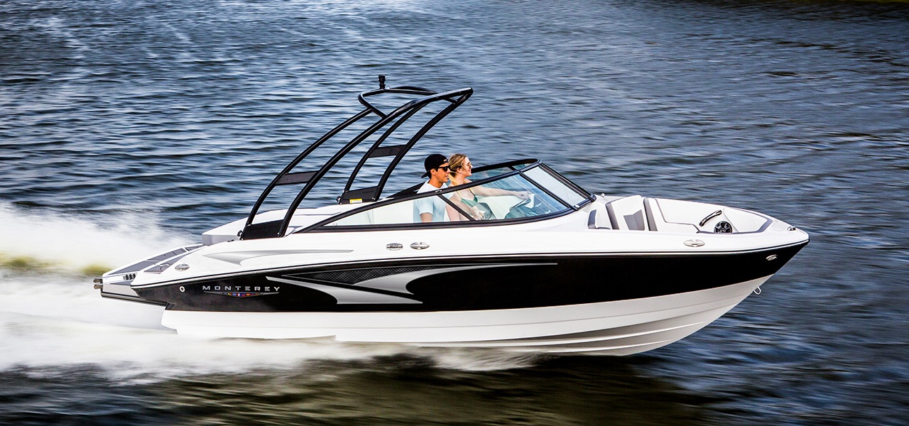 The power-packed M-20 boast sleek lines and fluid curves, and is loaded with amenities waiting to be embraced by both new and experienced boaters alike! Standard features include Monterey Boats patented Air Assist Chine, multiple stainless steel drink holders, an integral swim platform, along with multiple storage options. A stainless steel ski tow, telescoping and recessed swim ladder and sundeck come standard on the M-20, making it ideal for taking both you and your family anywhere you want to go!