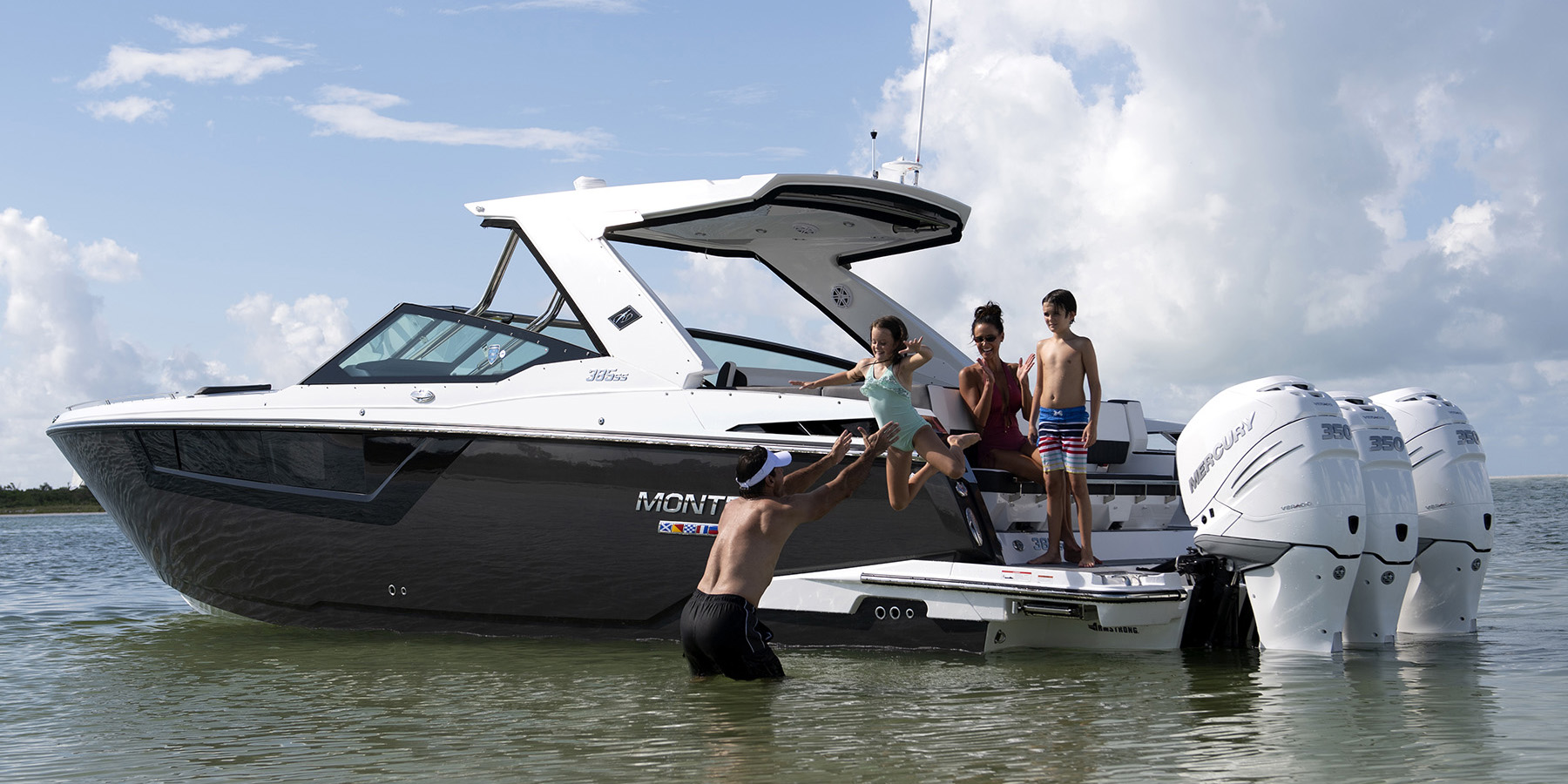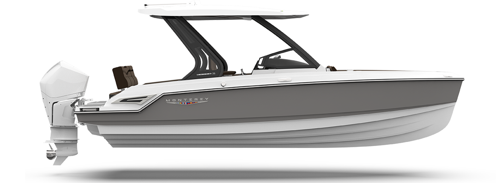 The Monterey Elite 25 OB blends luxury and performance in a sleek, single-outboard design. Built for comfort and entertaining, it features spacious seating, a fiberglass hardtop, ample storage, and a wet bar. Powered by a single engine delivering up to 350 HP, and riding on Monterey’s VST hull, it offers a smooth, confident ride ideal for coastal cruising in true Monterey style.